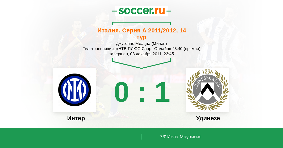 Италия. Серия А 06.01.2013 Удинезе Логотип футбольный клуб Удинезе 3:0 Логотип футбольный клуб Интер (Милан) Интер