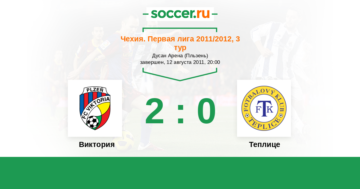 Чехия. Первая Лига 23.09.2012 Теплице Логотип футбольный клуб Теплице 1:1 Логотип футбольный клуб Виктория (Пльзень) Виктория