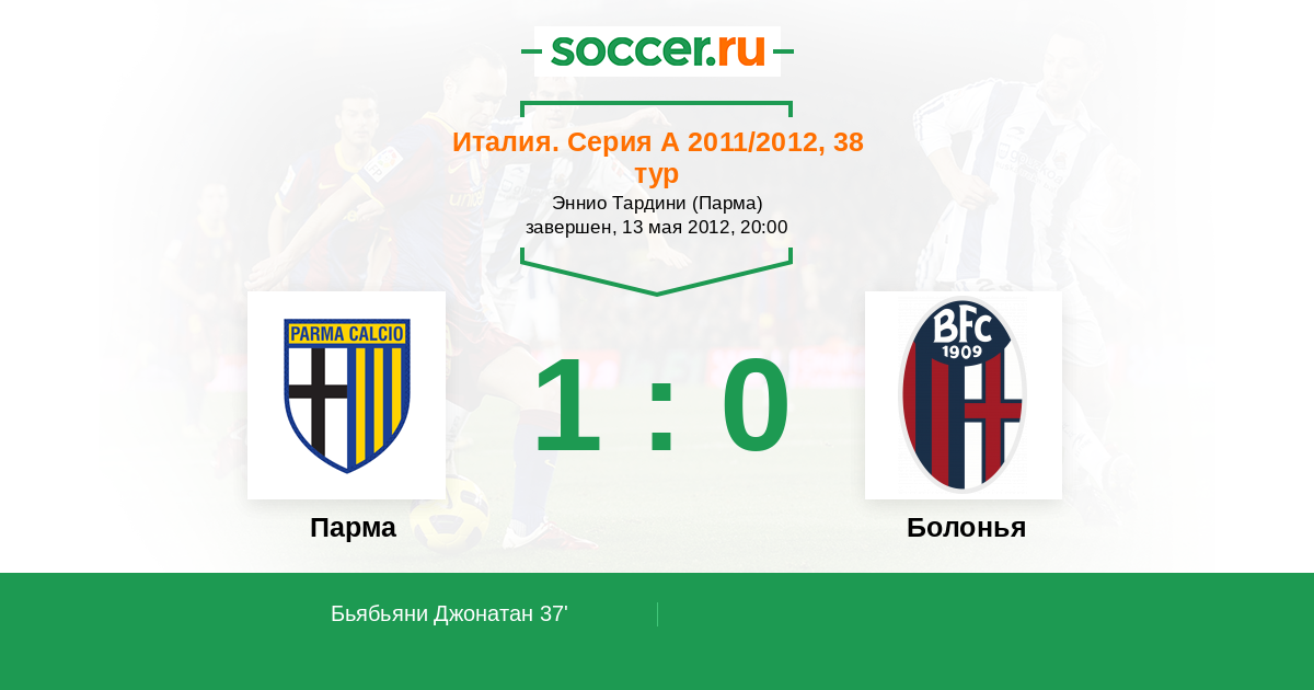 Италия. Серия А 12.05.2013 Парма Логотип футбольный клуб Парма 0:2 Логотип футбольный клуб Болонья Болонья