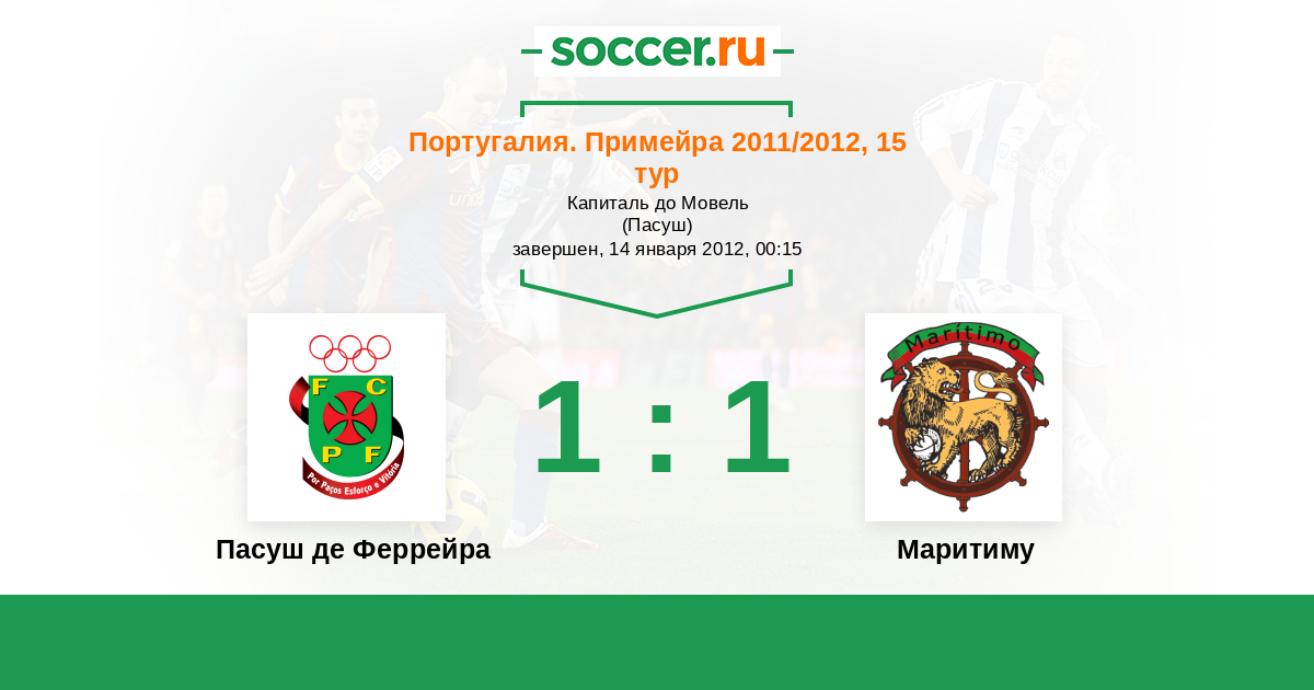 Португалия. Примейра 13.02.2011 Пасуш де Феррейра Логотип футбольный клуб Пасуш де Феррейра 1:0 Логотип футбольный клуб Маритиму (Фуншал) Маритиму