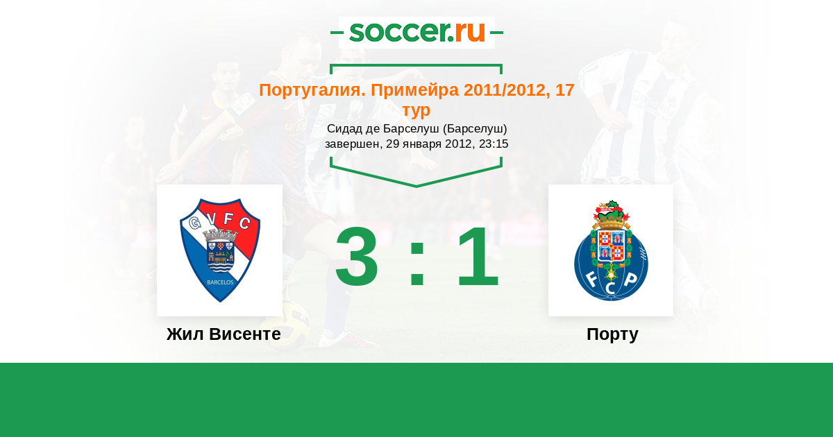 Португалия. Примейра 16.02.2014 Жил Висенте Логотип футбольный клуб Жил Висенте (Барселуш) 1:2 Логотип футбольный клуб Порту Порту