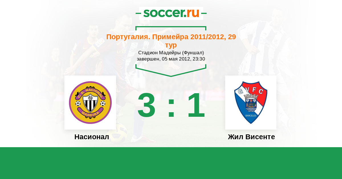 Португалия. Примейра 08.01.2012 Жил Висенте Логотип футбольный клуб Жил Висенте (Барселуш) 0:3 Логотип футбольный клуб Насионал (Фуншал) Насионал
