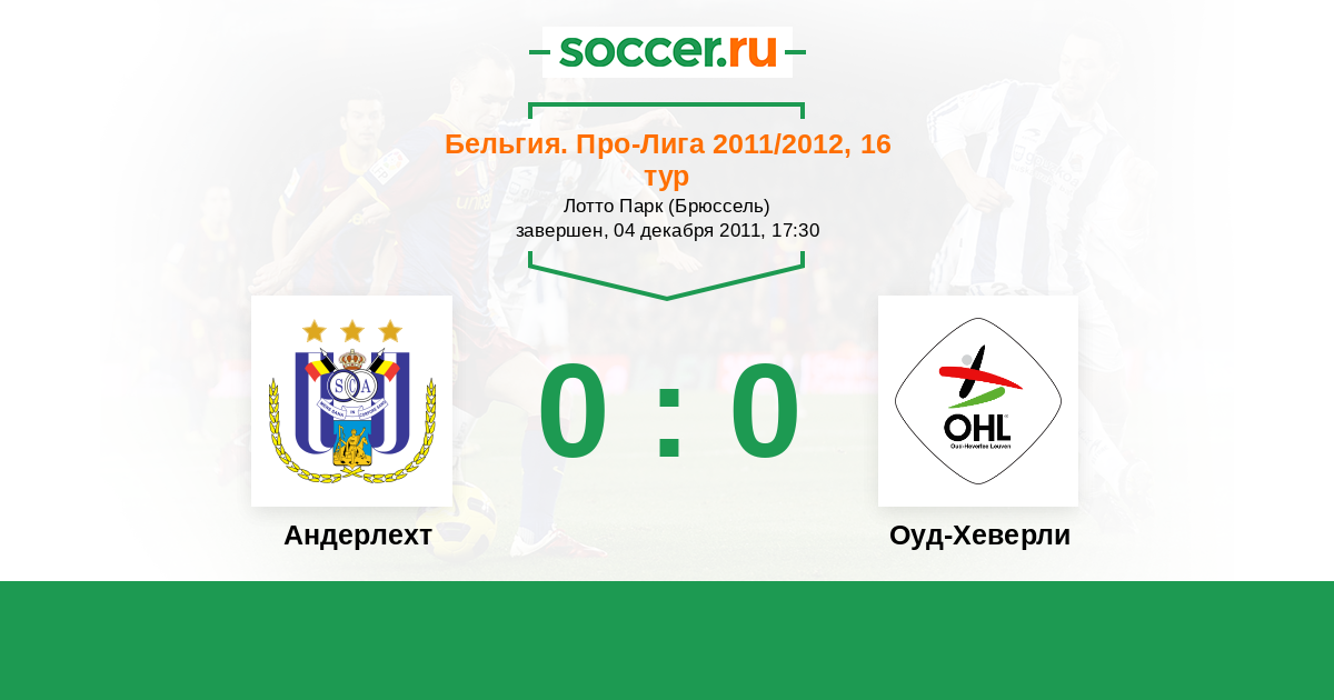 Бельгия. Про-Лига 29.07.2011 Оуд-Хеверли Логотип футбольный клуб Оуд-Хеверли (Левен) 2:1 Логотип футбольный клуб Андерлехт (Брюссель) Андерлехт
