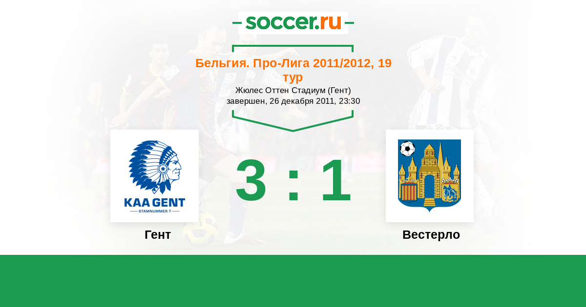 Бельгия. Про-Лига 20.08.2011 Вестерло Логотип футбольный клуб Вестерло 2:3 Логотип футбольный клуб Гент Гент