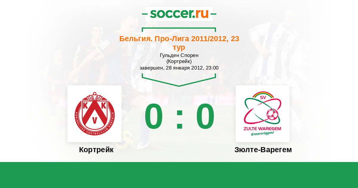 Бельгия. Про-Лига 08.12.2012 Кортрейк Логотип футбольный клуб Кортрейк 1:2 Логотип футбольный клуб Зюлте-Варегем Зюлте-Варегем