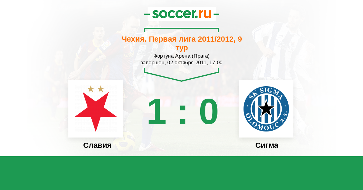 Чехия. Первая Лига 01.04.2012 Сигма Логотип футбольный клуб Сигма (Оломоуц) 1:0 Логотип футбольный клуб Славия (Прага) Славия