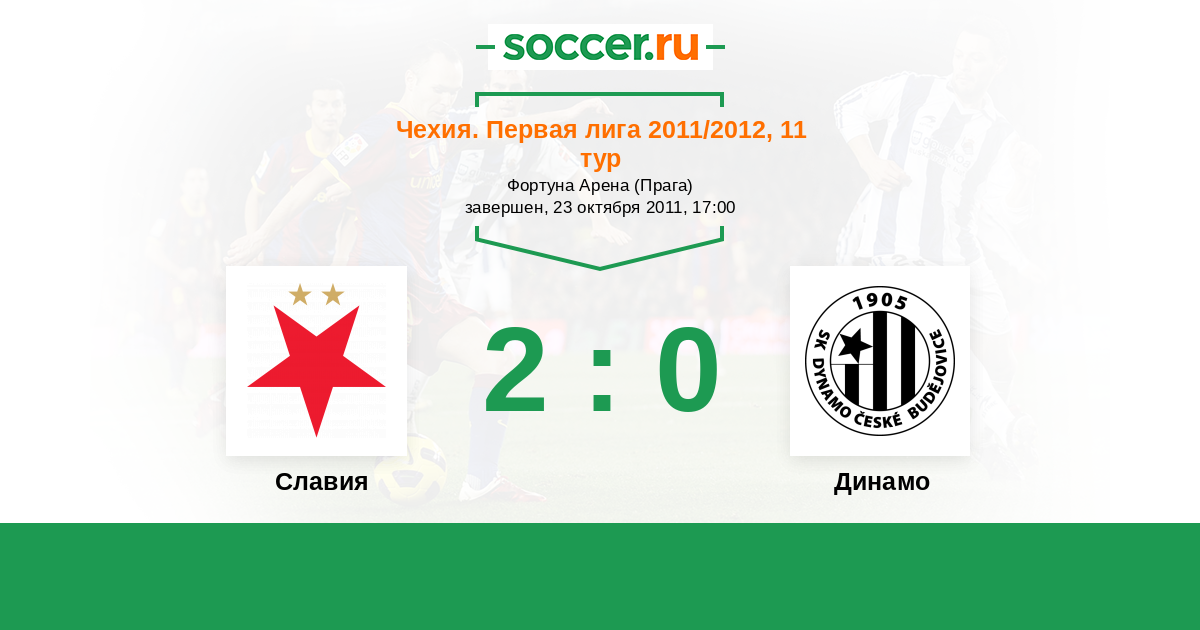 Чехия. Первая Лига 13.04.2012 Динамо Логотип футбольный клуб Динамо (Ческе-Будеевице) 1:0 Логотип футбольный клуб Славия (Прага) Славия