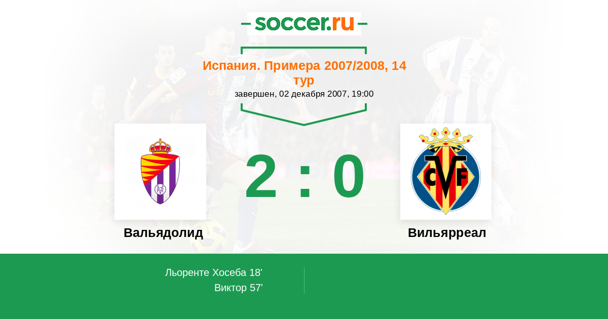 Испания. Кубок 16.01.2007 Вильярреал Логотип футбольный клуб Вильярреал 0:1 Логотип футбольный клуб Вальядолид Вальядолид