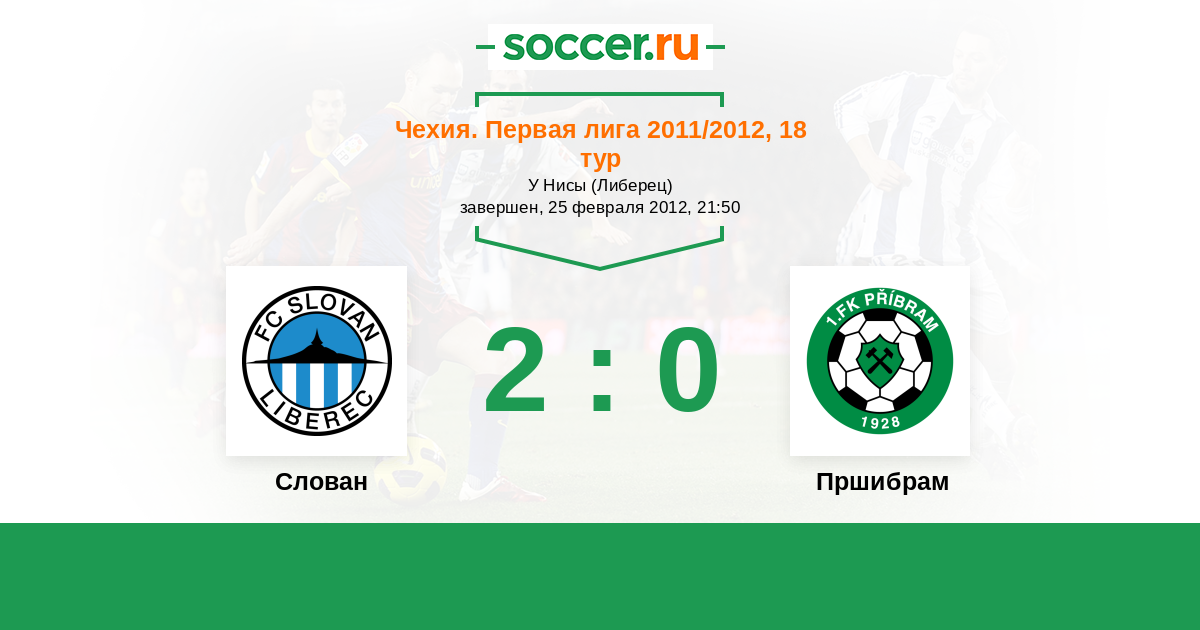 Чехия. Первая Лига 20.08.2011 Пршибрам Логотип футбольный клуб Пршибрам 2:3 Логотип футбольный клуб Слован (Либерец) Слован