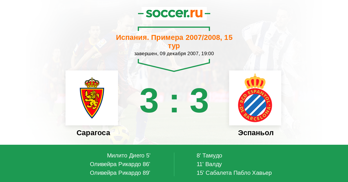 Испания. Примера 03.02.2007 Эспаньол Логотип футбольный клуб Эспаньол (Барселона) 1:2 Логотип футбольный клуб Сарагоса Сарагоса