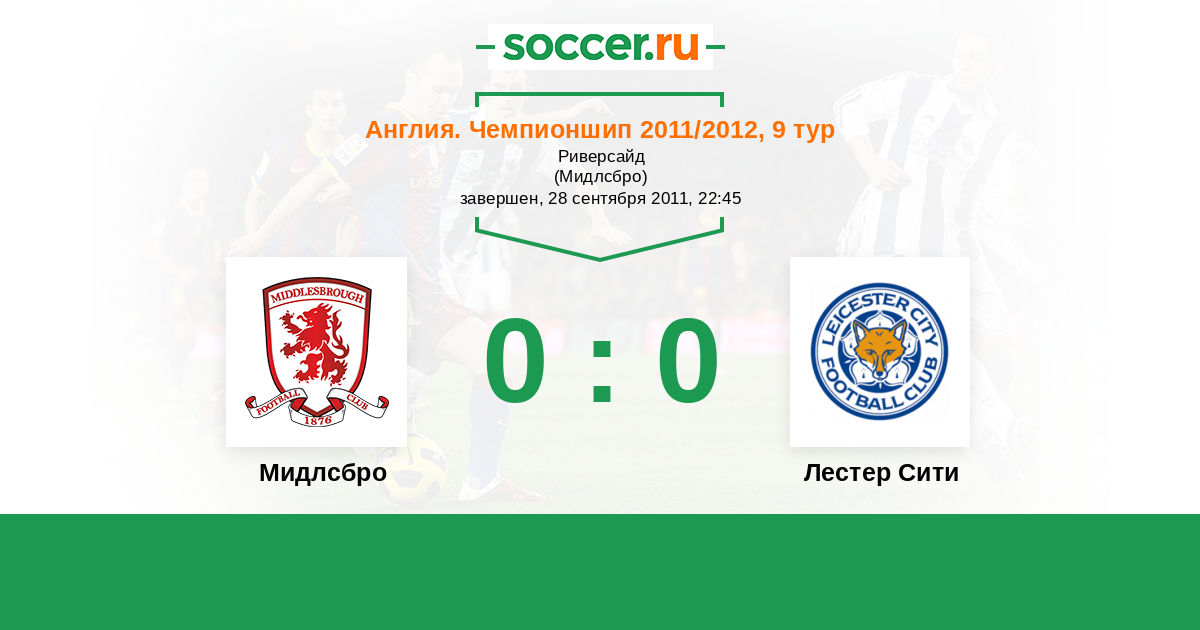 Англия. Чемпионшип 29.09.2012 Мидлсбро Логотип футбольный клуб Мидлсбро 1:2 Логотип футбольный клуб Лестер Сити Лестер Сити