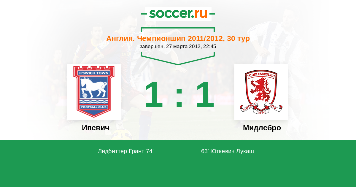 Англия. Чемпионшип 15.09.2012 Мидлсбро Логотип футбольный клуб Мидлсбро 2:0 Логотип футбольный клуб Ипсвич Ипсвич