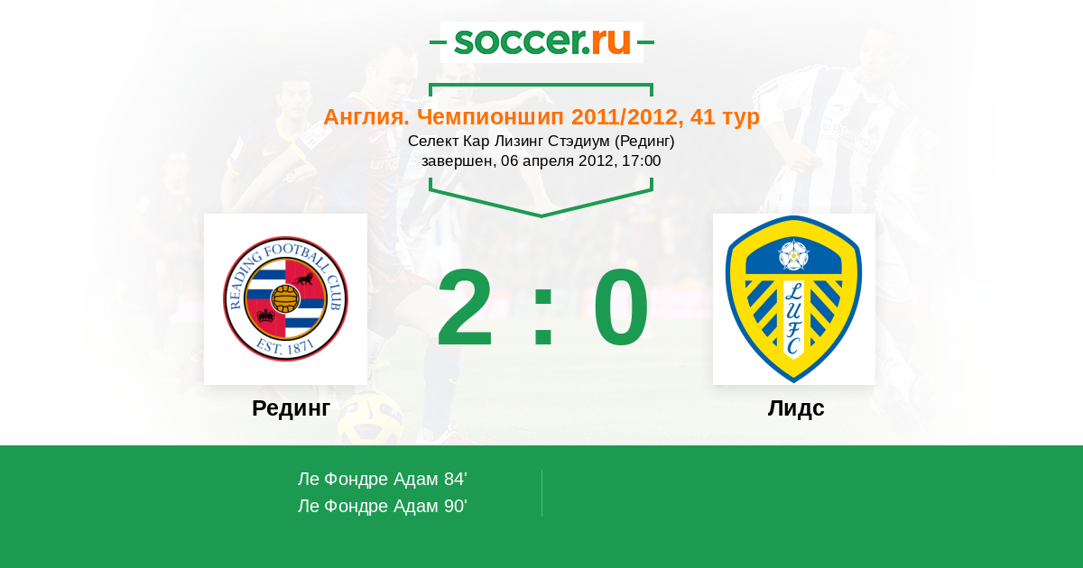 Англия. Чемпионшип 22.04.2011 Лидс Логотип футбольный клуб Лидс 0:0 Логотип футбольный клуб Рединг Рединг