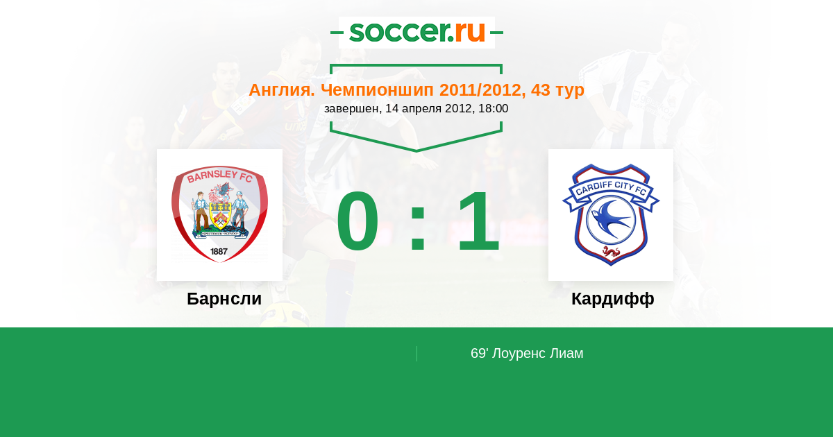 Англия. Чемпионшип 24.11.2012 Барнсли Логотип футбольный клуб Барнсли 1:2 Логотип футбольный клуб Кардифф Кардифф