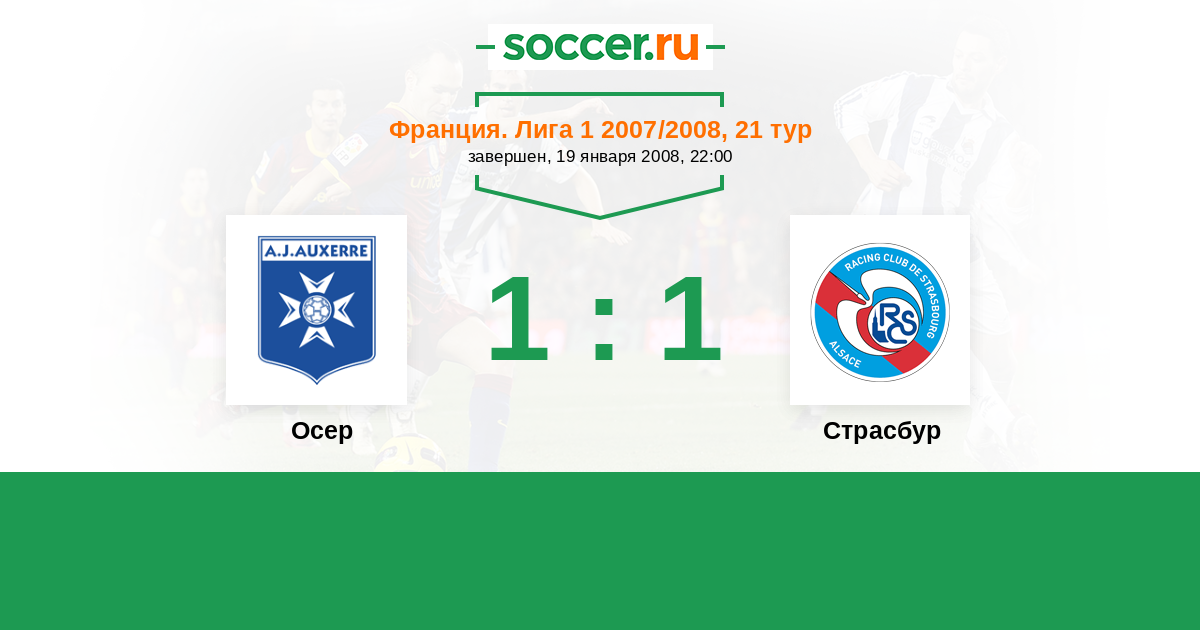 Франция. Лига 1 15.08.2007 Страсбур Логотип футбольный клуб Страсбур 3:0 Логотип футбольный клуб Осер Осер