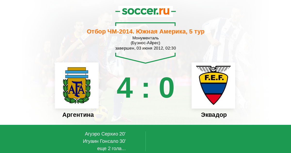Отбор ЧМ. Южная Америка 12.06.2013 Эквадор Логотип Эквадор 1:1 Логотип Аргентина Аргентина