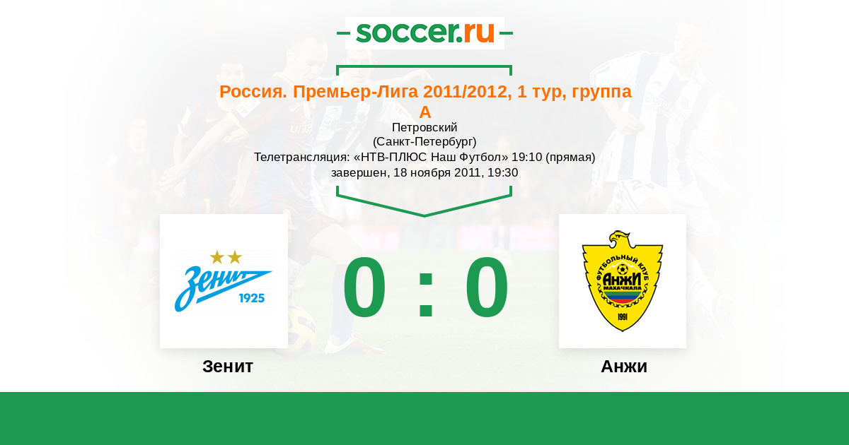 Россия. Премьер-Лига 10.12.2012 Зенит Логотип футбольный клуб Зенит (Санкт-Петербург) 1:1 Логотип футбольный клуб Анжи (Махачкала) Анжи