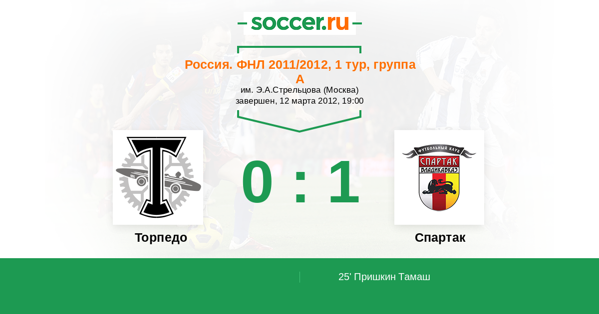 Россия. Первая лига 15.04.2012 Алания Логотип футбольный клуб Алания (Владикавказ) 1:0 Логотип футбольный клуб Торпедо (Москва) Торпедо