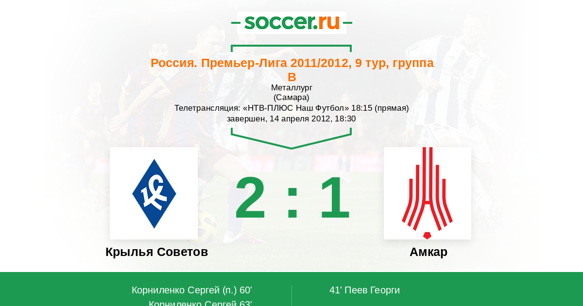 Россия. Премьер-Лига 02.04.2011 Амкар Логотип футбольный клуб Амкар (Пермь) 1:1 Логотип футбольный клуб Крылья Советов (Самара) Крылья Советов