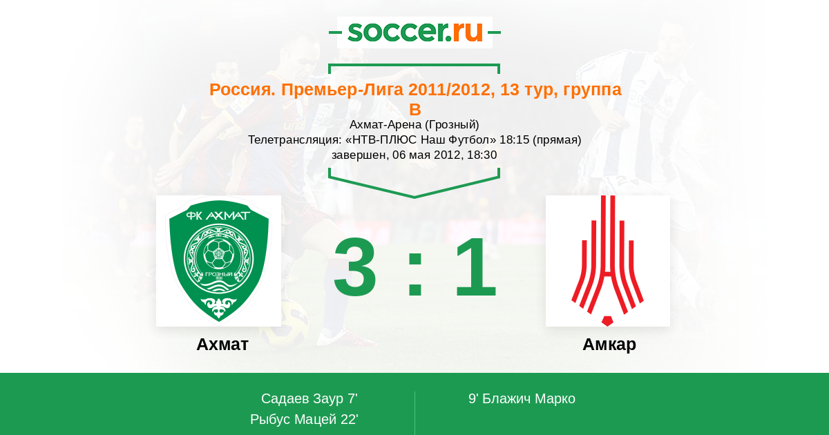 Россия. Премьер-Лига 01.04.2012 Амкар Логотип футбольный клуб Амкар (Пермь) 2:0 Логотип футбольный клуб Терек (Грозный) Терек