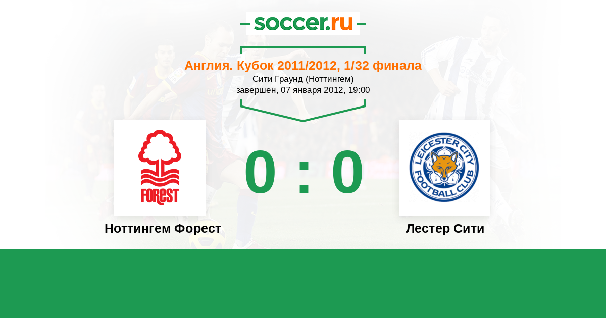Англия. Кубок 17.01.2012 Лестер Сити Логотип футбольный клуб Лестер Сити 4:0 Логотип футбольный клуб Ноттингем Форест Ноттингем Форест