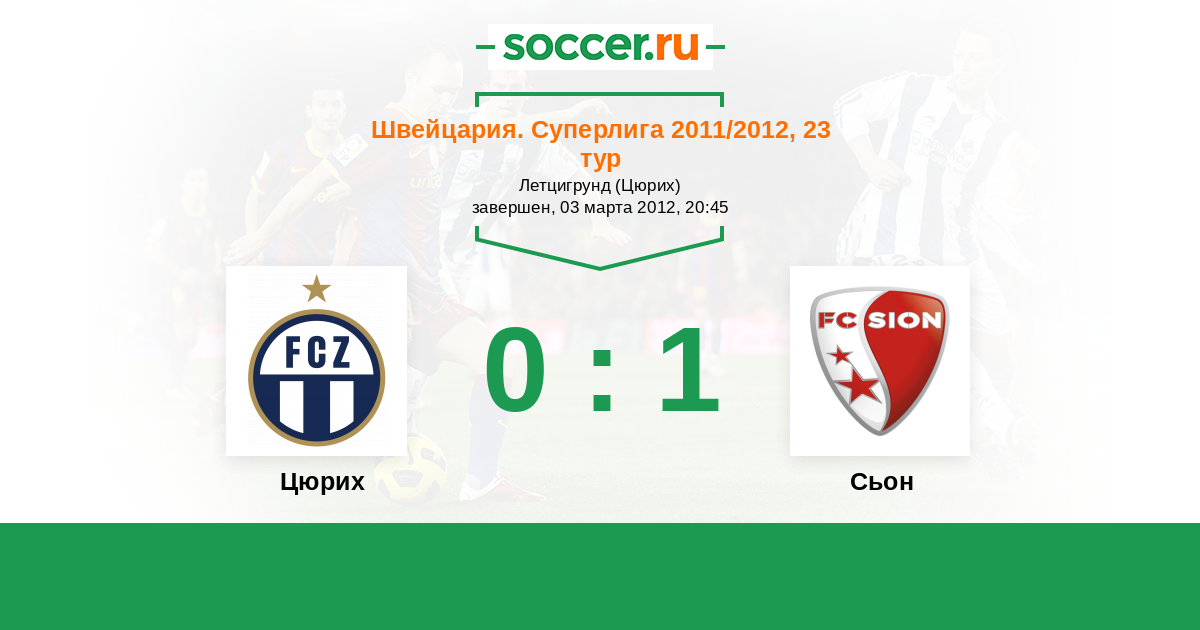 Швейцария. Суперлига 07.04.2012 Сьон Логотип футбольный клуб Сьон 2:1 Логотип футбольный клуб Цюрих Цюрих