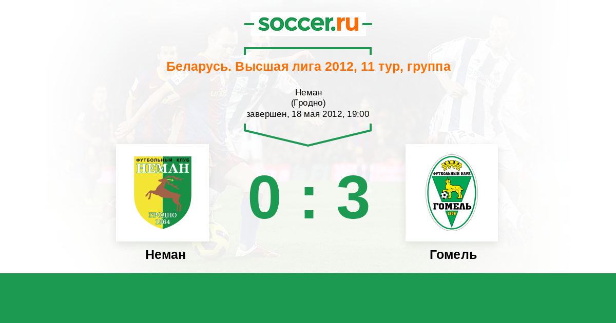Беларусь. Высшая лига 17.11.2012 Гомель Логотип футбольный клуб Гомель 0:1 Логотип футбольный клуб Неман (Гродно) Неман