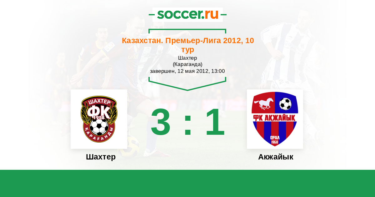 Казахстан. Премьер-лига 15.09.2012 Акжайык Логотип футбольный клуб Акжайык (Уральск) 0:1 Логотип футбольный клуб Шахтер (Караганда) Шахтер