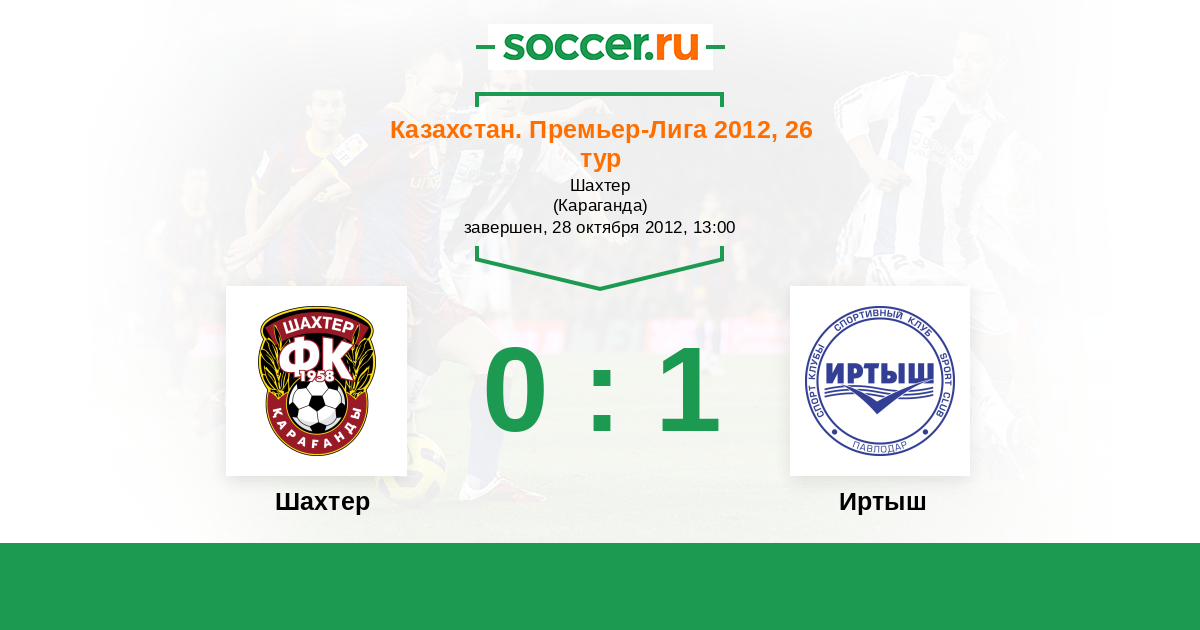 Казахстан. Премьер-лига 01.11.2010 Иртыш Логотип футбольный клуб Иртыш (Павлодар) 1:0 Логотип футбольный клуб Шахтер (Караганда) Шахтер