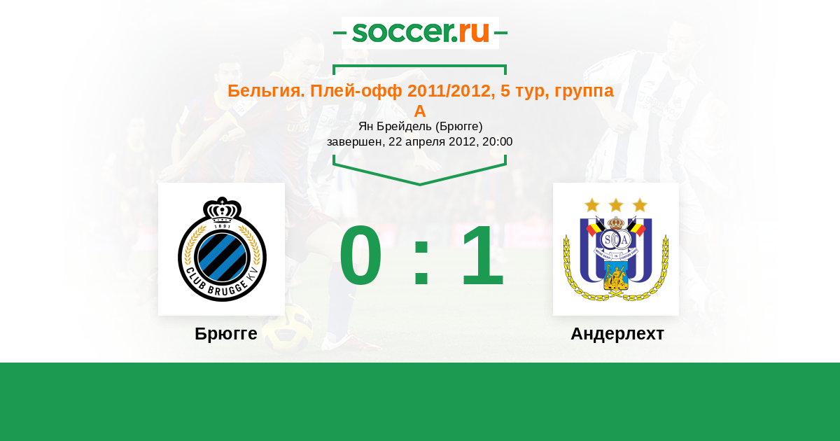 Бельгия. Про-Лига 06.05.2012 Андерлехт Логотип футбольный клуб Андерлехт (Брюссель) 1:1 Логотип футбольный клуб Брюгге Брюгге