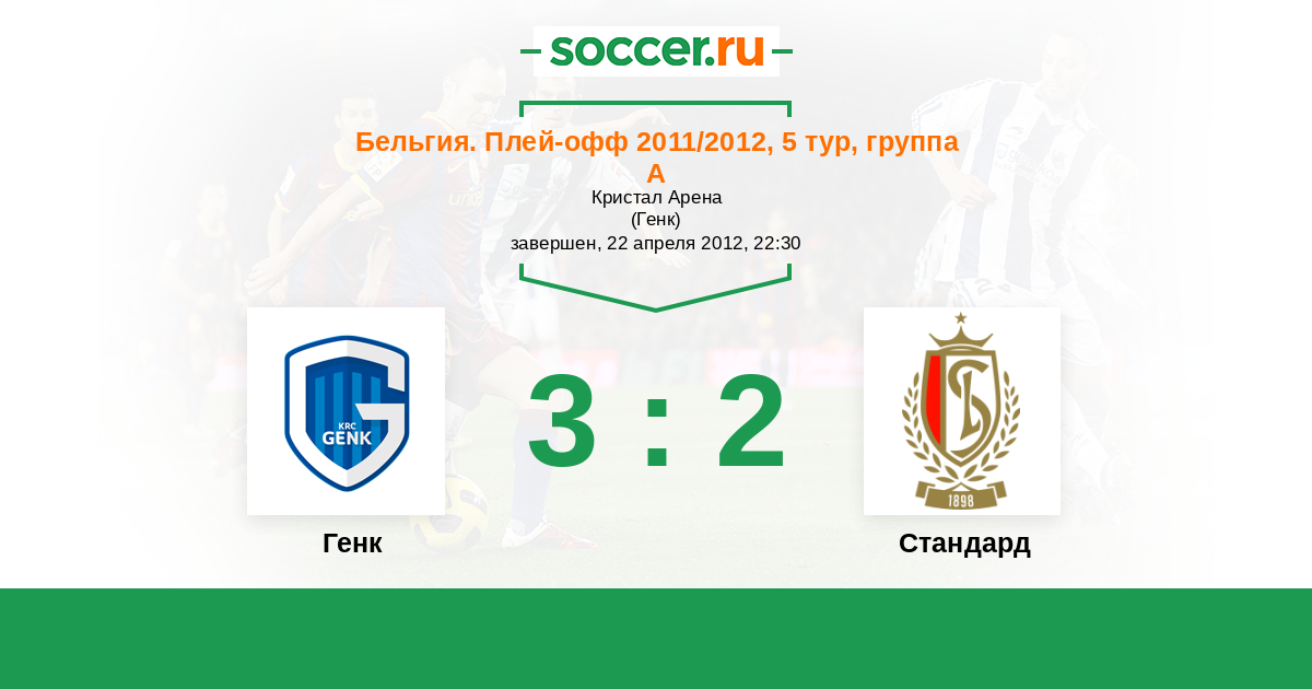 Бельгия. Про-Лига 06.05.2012 Стандард Логотип футбольный клуб Стандард (Льеж) 2:3 Логотип футбольный клуб Генк Генк