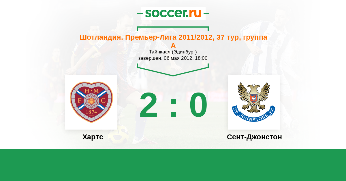 Шотландия. Премьер-Лига 24.03.2012 Сент-Джонстон Логотип футбольный клуб Сент-Джонстон (Перт) 2:1 Логотип футбольный клуб Хартс (Эдинбург) Хартс