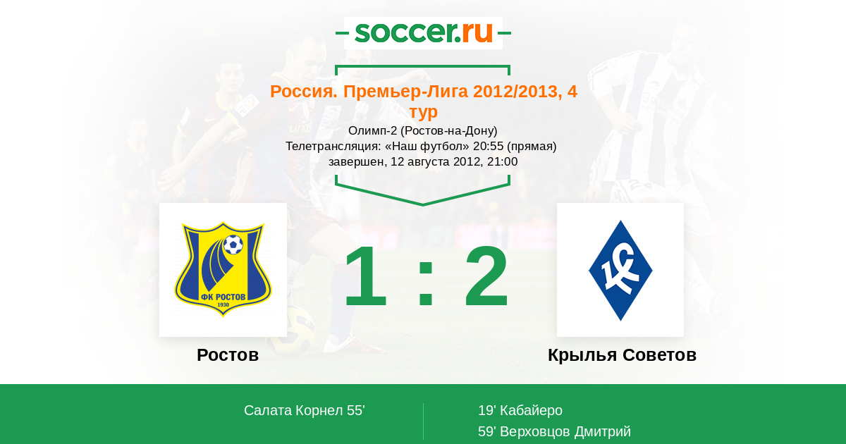 Россия. Премьер-Лига 02.12.2012 Крылья Советов Логотип футбольный клуб Крылья Советов (Самара) 0:2 Логотип футбольный клуб Ростов (Ростов-на-Дону) Ростов