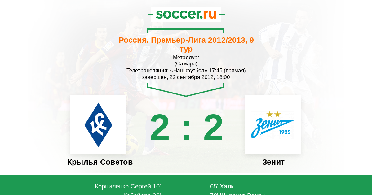 Россия. Премьер-Лига 07.04.2013 Зенит Логотип футбольный клуб Зенит (Санкт-Петербург) 1:0 Логотип футбольный клуб Крылья Советов (Самара) Крылья Советов