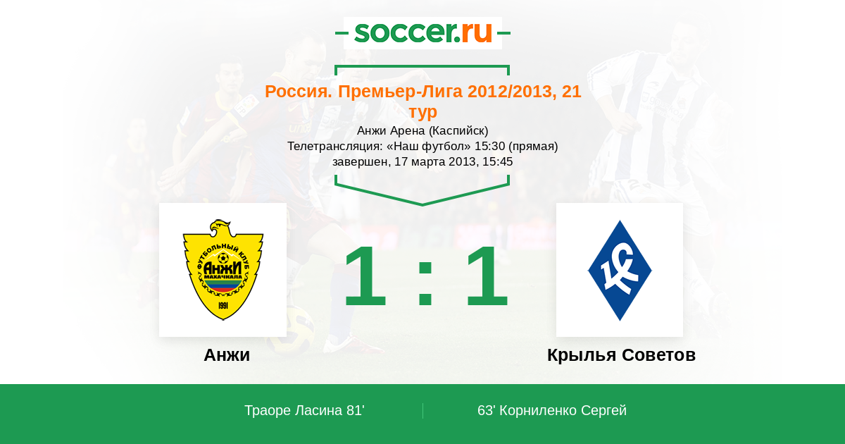Россия. Премьер-Лига 28.07.2013 Крылья Советов Логотип футбольный клуб Крылья Советов (Самара) 1:1 Логотип футбольный клуб Анжи (Махачкала) Анжи