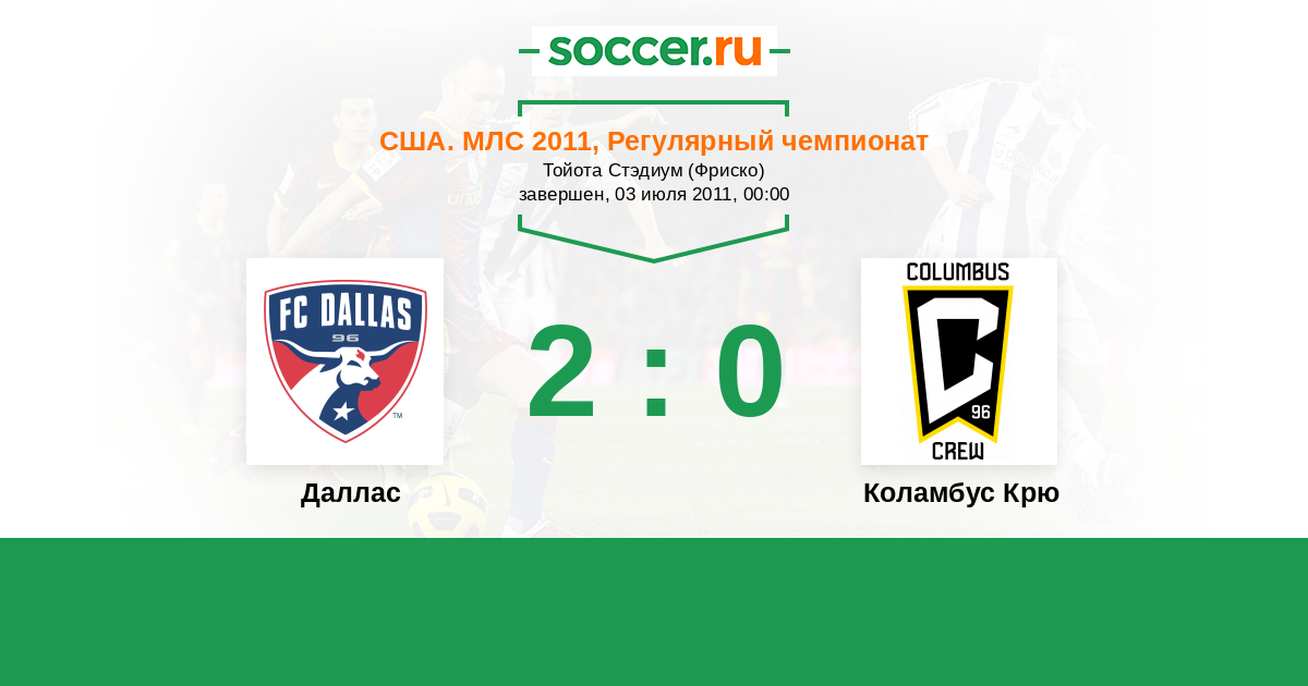 США. МЛС 02.04.2011 Коламбус Крю Логотип футбольный клуб Коламбус Крю 2:0 Логотип футбольный клуб Даллас Даллас