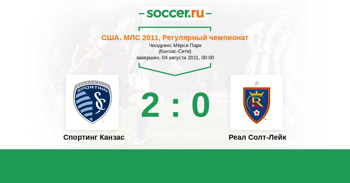 США. МЛС 15.04.2012 Спортинг Канзас Логотип футбольный клуб Спортинг Канзас (Канзас-Сити) 1:0 Логотип футбольный клуб Реал Солт-Лейк (Солт-Лейк-Сити) Реал Солт-Лейк