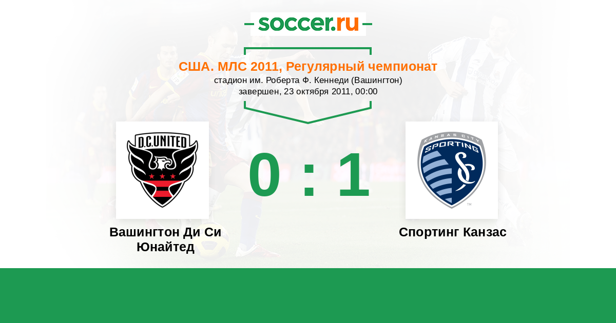 США. МЛС 22.08.2011 Спортинг Канзас Логотип футбольный клуб Спортинг Канзас (Канзас-Сити) 1:0 Логотип футбольный клуб Вашингтон Ди Си Юнайтед Вашингтон Ди Си Юнайтед