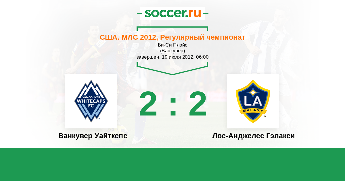 США. МЛС 24.06.2012 Лос-Анджелес Гэлакси Логотип футбольный клуб Лос-Анджелес Гэлакси 3:0 Логотип футбольный клуб Ванкувер Уайткепс Ванкувер Уайткепс