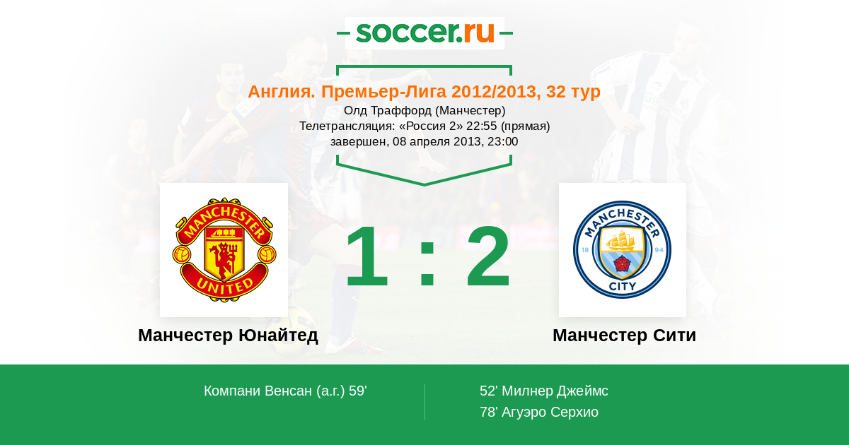 Англия. Премьер-Лига 09.12.2012 Манчестер Сити Логотип футбольный клуб Манчестер Сити 2:3 Логотип футбольный клуб Манчестер Юнайтед Манчестер Юнайтед