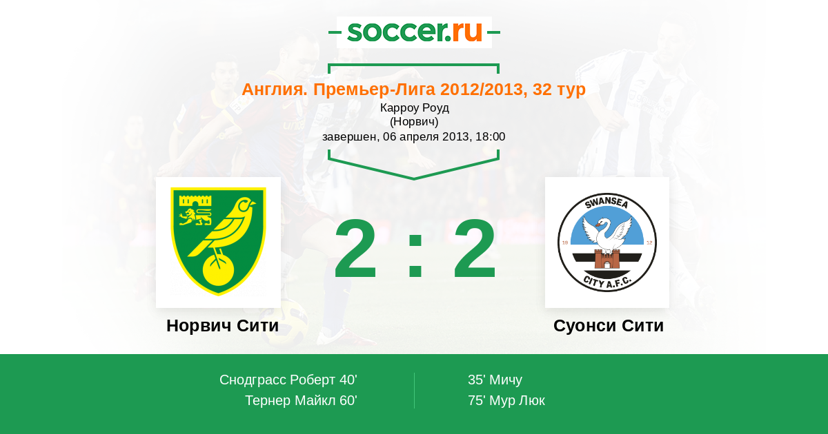 Англия. Премьер-Лига 11.02.2012 Суонси Сити Логотип футбольный клуб Суонси Сити 2:3 Логотип футбольный клуб Норвич Сити Норвич Сити