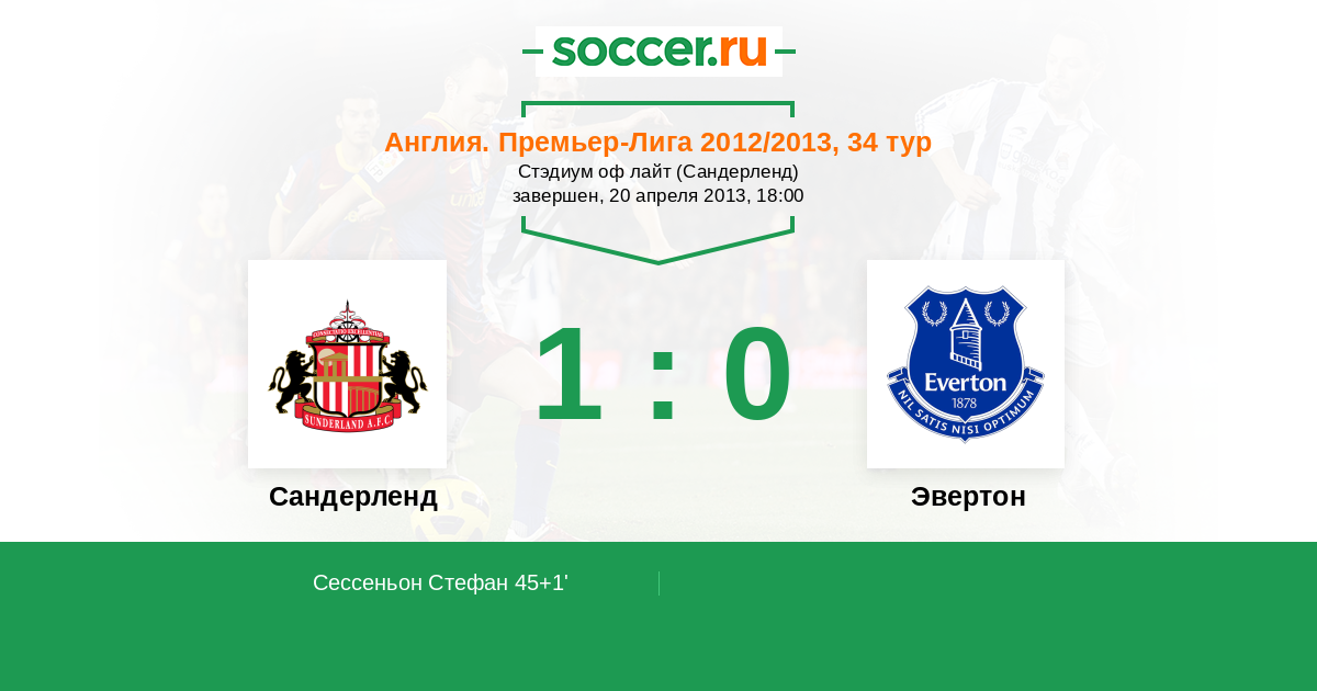 Англия. Премьер-Лига 12.04.2014 Сандерленд Логотип футбольный клуб Сандерленд 0:1 Логотип футбольный клуб Эвертон (Ливерпуль) Эвертон