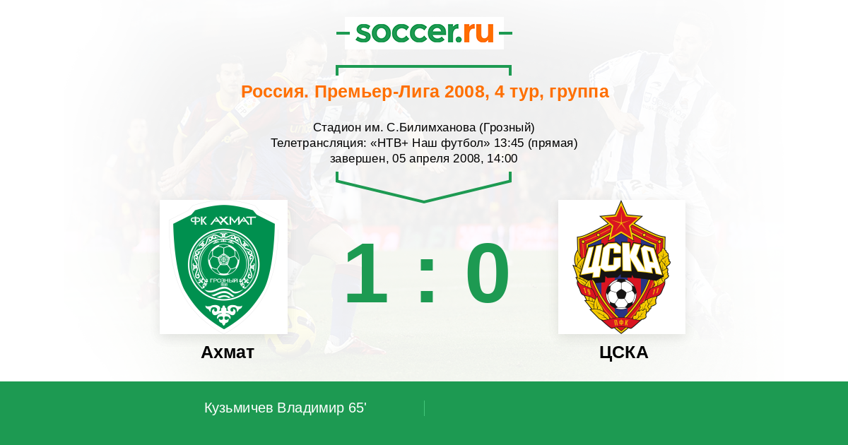 Россия. Премьер-Лига 01.05.2022 Ахмат Логотип футбольный клуб Ахмат (Грозный) 2:0 Логотип футбольный клуб ЦСКА (Москва) ЦСКА