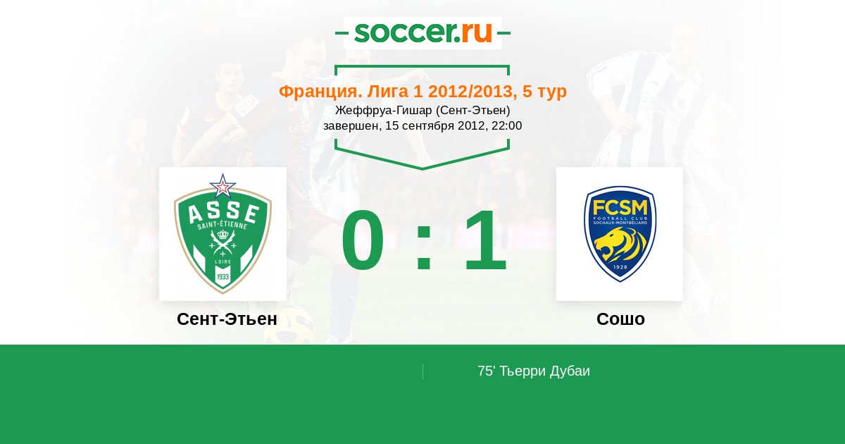 Франция. Лига 1 02.02.2013 Сошо Логотип футбольный клуб Сошо (Монбельяр) 1:2 Логотип футбольный клуб Сент-Этьен Сент-Этьен