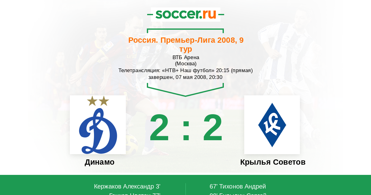 Россия. Премьер-Лига 27.09.2008 Крылья Советов Логотип футбольный клуб Крылья Советов (Самара) 3:3 Логотип футбольный клуб Динамо (Москва) Динамо