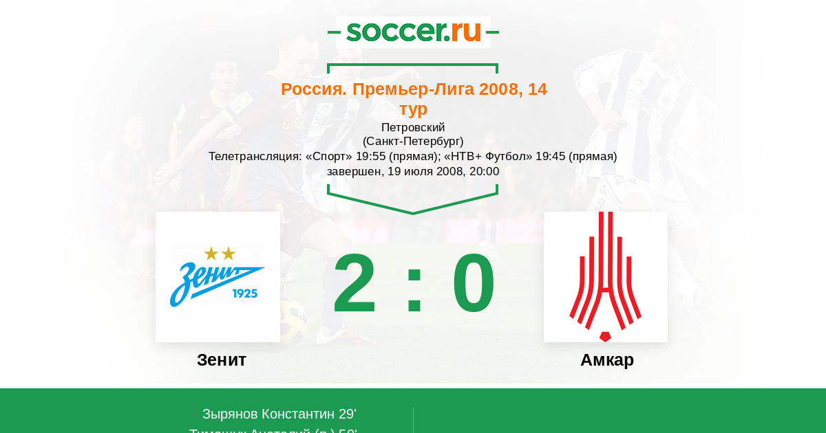 Россия. Премьер-Лига 02.07.2005 Зенит Логотип футбольный клуб Зенит (Санкт-Петербург) 5:1 Логотип футбольный клуб Амкар (Пермь) Амкар