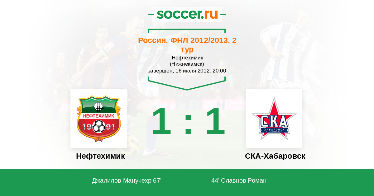 Россия. Первая лига 16.07.2016 Нефтехимик Логотип футбольный клуб Нефтехимик (Нижнекамск) 0:0 Логотип футбольный клуб СКА-Хабаровск СКА-Хабаровск