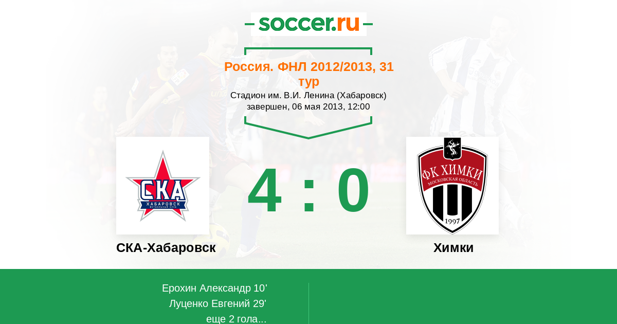 Россия. Первая лига 01.04.2012 СКА-Энергия Логотип футбольный клуб СКА-Энергия (Хабаровск) 2:1 Логотип футбольный клуб Химки Химки