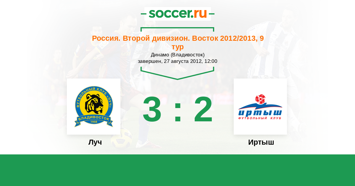 Россия. 2-й дивизион. Восток 17.10.2012 Иртыш Логотип футбольный клуб Иртыш (Омск) 2:3 Логотип футбольный клуб Луч (Владивосток) Луч
