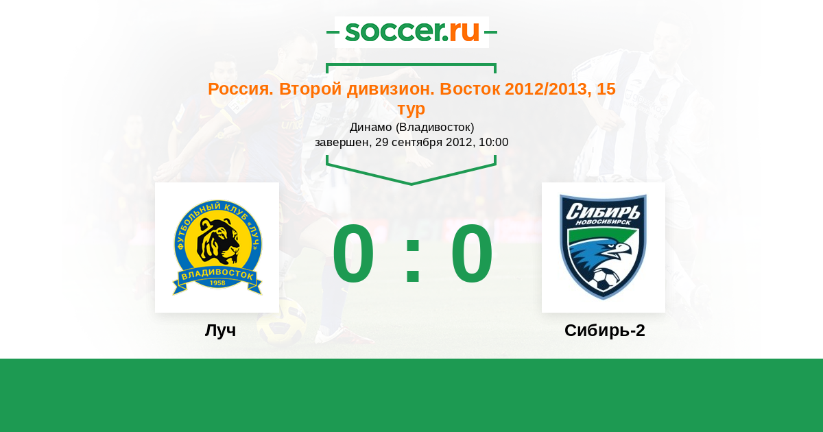 Россия. 2-й дивизион. Восток 05.08.2012 Сибирь-2 Логотип футбольный клуб Сибирь-2 (Новосибирск) 0:1 Логотип футбольный клуб Луч (Владивосток) Луч